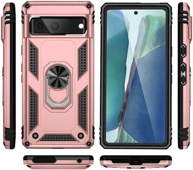 Features: Compatible with Google Pixel 7a. Military Standard Shock Test MIL-STD 810G- 516.6 Protection. The case endured 26 drops (at 48in) on all 6 faces, 12 edges and 8 corners of the device and sustained zero damage to the appearance and internal hardware of the phone itself. Made from a special strong and lightweight durable material, providing you with long lasting protection for your smartphone without making it cumbersome. Ring holder for extra drop protection - in more ways than one. The built-it ring features a 180 & 360 degree rotating design to ensure a comfortable grip at any angle. Flip the ring out and it doubles as a kickstand to take your binge-watching experience to the next level. Unique mix material hybrid design.