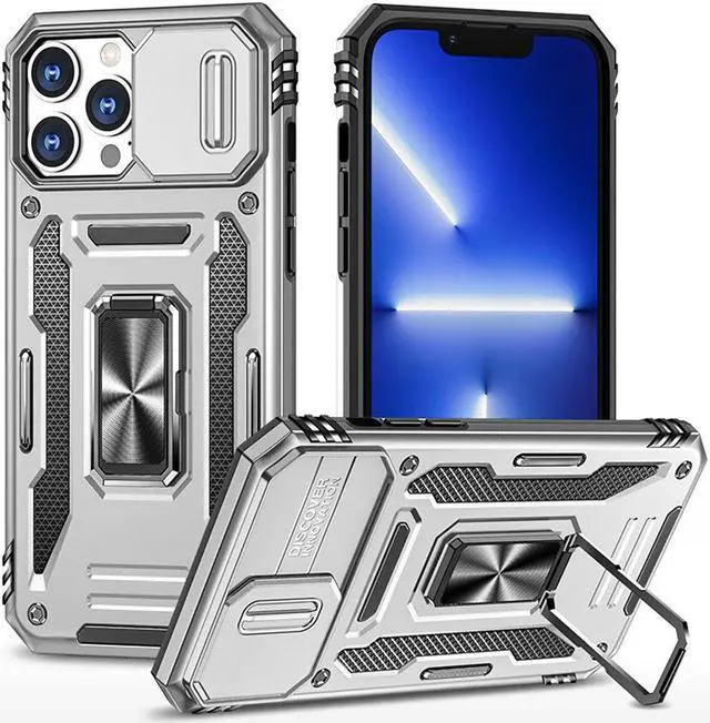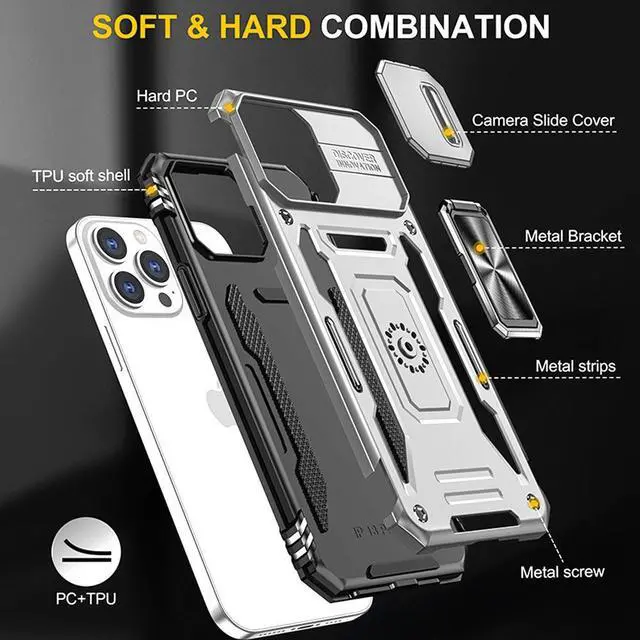 Features: Compatible with Apple iPhone 14 Pro Max. Military Standard Shock Test MIL-STD 810G- 516.6 Protection. The case endured 26 drops (at 48in) on all 6 faces, 12 edges and 8 corners of the device and sustained zero damage to the appearance and internal hardware of the phone itself. Made from a special strong and lightweight durable material, providing you with long lasting protection for your smartphone without making it cumbersome. The case features a handy finger loop that keeps your phone securely in hand while on your next adventure and even works as a viewing stand to watch movies. The ring grip folds flat and out of view if you do not want or need it. But if you do, simply pull the loop out, slip your finger through and you have an extra secure grip on your phone. Unique mix material hybrid design. This hard-wearing tough case safe-guards your phone against whatever life can throw your way, keeping your device secure at all times even in the most extreme of conditions. Raised front bezel and camera opening prevent scratches to the screen and camera lens.