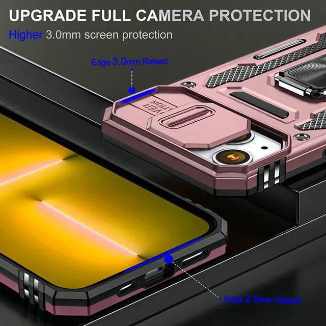 Features: Compatible with Apple iPhone 14 Plus. Military Standard Shock Test MIL-STD 810G- 516.6 Protection. The case endured 26 drops (at 48in) on all 6 faces, 12 edges and 8 corners of the device and sustained zero damage to the appearance and internal hardware of the phone itself. Made from a special strong and lightweight durable material, providing you with long lasting protection for your smartphone without making it cumbersome. The case features a handy finger loop that keeps your phone securely in hand while on your next adventure and even works as a viewing stand to watch movies. The ring grip folds flat and out of view if you do not want or need it. But if you do, simply pull the loop out, slip your finger through and you have an extra secure grip on your phone. Unique mix material hybrid design. This hard-wearing tough case safe-guards your phone against whatever life can throw your way, keeping your device secure at all times even in the most extreme of conditions. Raised front bezel and camera opening prevent scratches to the screen and camera lens.