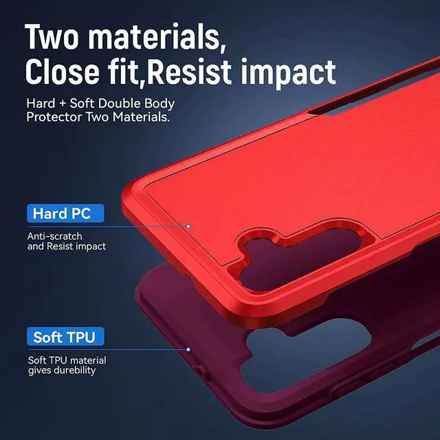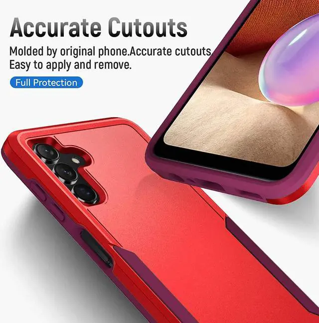Features: Compatible with Samsung Galaxy A14 5G. Military Standard Shock Test MIL-STD 810G- 516.6 Protection. The case endured 26 drops (at 48in) on all 6 faces, 12 edges and 8 corners of the device and sustained zero damage to the appearance and internal hardware of the phone itself. Featuring a robust multi-layered design, the Tuff Case provides extreme protection for your device. This hard-wearing tough case safe-guards your phone against whatever life can throw at, keeping it secure at all times even in the most extreme of conditions. A soft rubberized TPU inner core tightly grips to your phone while absorbs shock and cushions the phone from drops and impact. Patented hybrid case with ridge polycarbonate hard shell for armor-like protection. Raised front bezel and camera opening prevent scratches to the screen and camera lens. Textured rubbery interior for impact resistant protection. Intuitive button covers for a tactile experience. Precise cutouts provide full access to your phone’ s important features, ports and buttons.