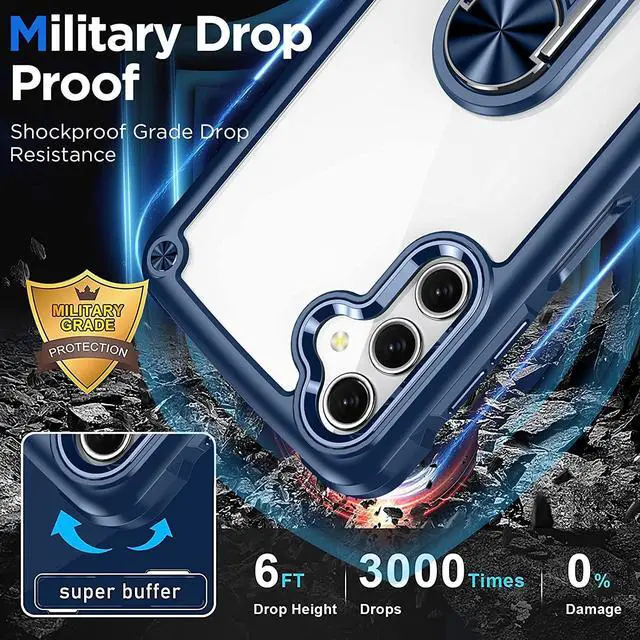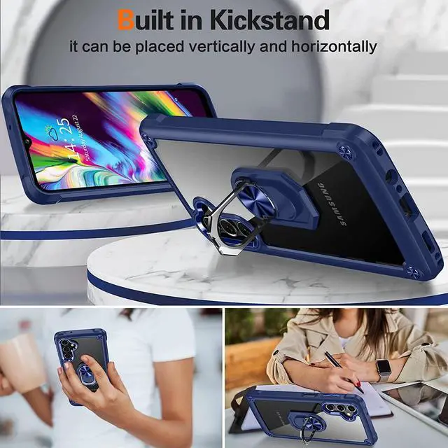 Features: Compatible with Samsung Galaxy A14 5G. Extensively drop tested, so you can feel reassured that your device is well protected. Crystal clear case provides a slim fitting stylish design and reinforced corner shock protection against damage, keeping your device looking great at all time. Made from reinforced bonded thermopolyurethane and optical grade polycarbonate materials, which makes it flexible enough to absorb punishment but hard enough to resist potential damage. The back of the case has a built-in extremely practical handle, Ring, which can be put on the finger to hold the phone more securely in your hand. Pull the ring out and have a handy viewing stand to comfortably watch your favorite show. Designed to be slim, lightweight and strong - so you can be assured that this case will add virtually no extra bulk to your phone and will still fit in your pocket with ease. Raised bezels on the case protects your phone's screen and camera from scratches. independent metal buttons for an easy, conspicuous press. Enjoy magnetic mount compatibility, as the ring holder also functions as a built-in metal plate.