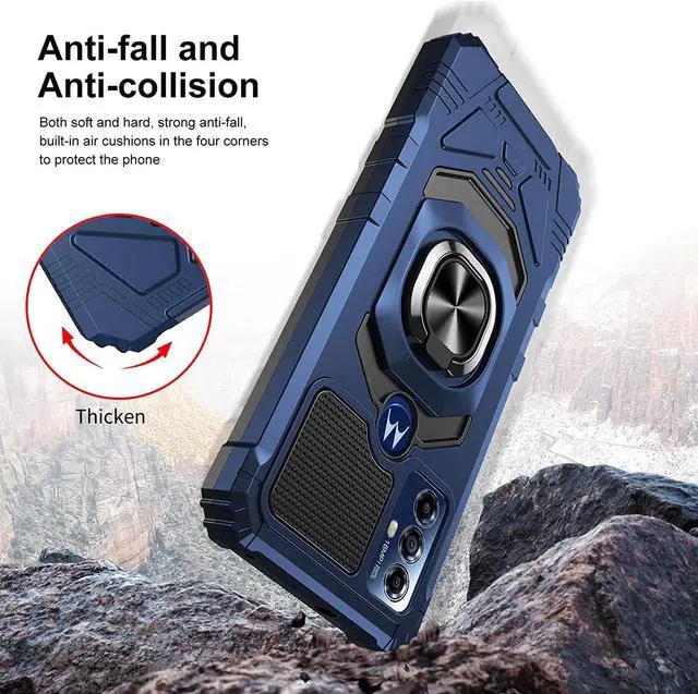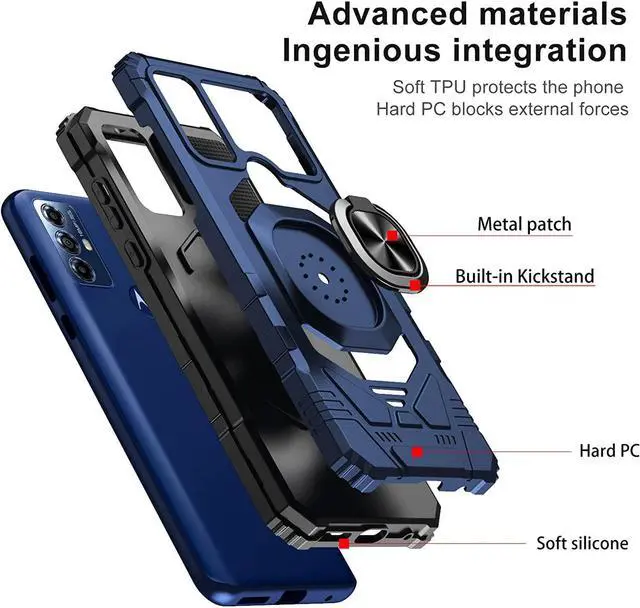 Features: Compatible with Motorola Moto G Play 2023. Extensively drop tested, so you can feel reassured that your device is well protected. Made from reinforced bonded thermopolyurethane and high quality polycarbonate materials, which makes it flexible enough to absorb punishment but hard enough to resist potential damage. Finger loop for extra drop protection - in more ways than one. The loop can also perform as a handy viewing stand. Just pull the loop out to its full extent and rest your phone at an angle on a flat surface. The loop will prop the phone up at a perfect viewing angle for watching media. Four corners with beveled exterior offering strong resistance to impact and bumps. Reinforced TPU bumper edges provide excellent protection where it's most needed. The selected materials used have a non-slip coating that provides you with extra grip for your phone, which minimizes the chance of dropping your device. Slim fitting design adds no very little bulk and fits perfectly in your pocket. Raised bezels on the case protects your screen and camera from scratches and dirt. Signature lip designed to protect your device and camera lens from flat falls.