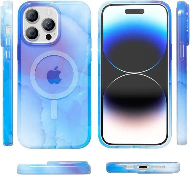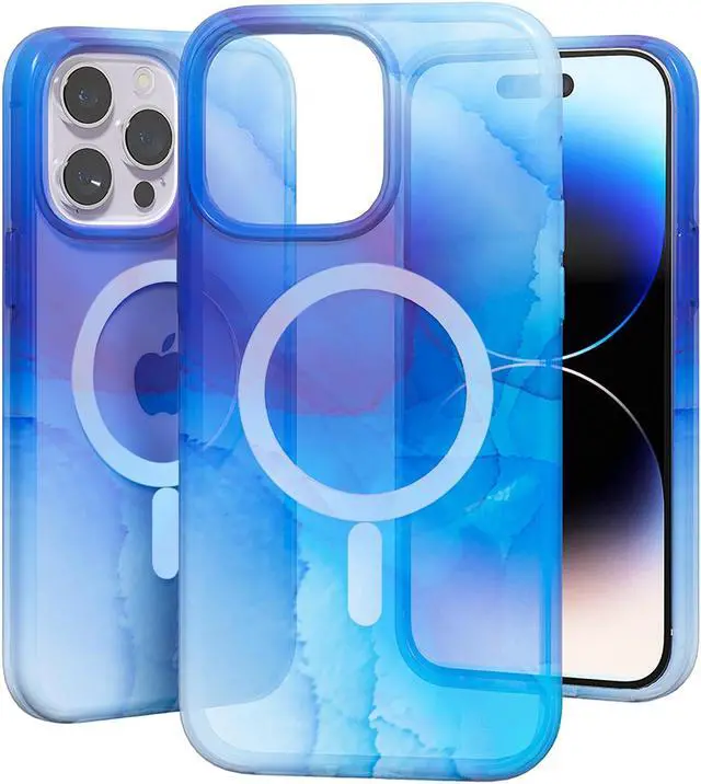 Features: Compatible with Apple iPhone 14 Pro. Designed to interact with Apple’ s MagSafe ecosystem. Built-in magnetic ring for strengthened MagSafe connections. Compatible with Apple MagSafe chargers and accessories so you can power up without removing the case. Hazy transparency hydrographic patterns made using a special paint-pouring process. Made from a blend of polycarbonate and TPU for durability. Raised bezels lift screen and camera off flat surfaces. Form-fitted design for an original feel. Pronounced buttons with tactile feedback and added detailing. Antimicrobial case protection. Precisely cutouts to preserve full use of volume buttons, charger, camera, microphone, and all other ports.