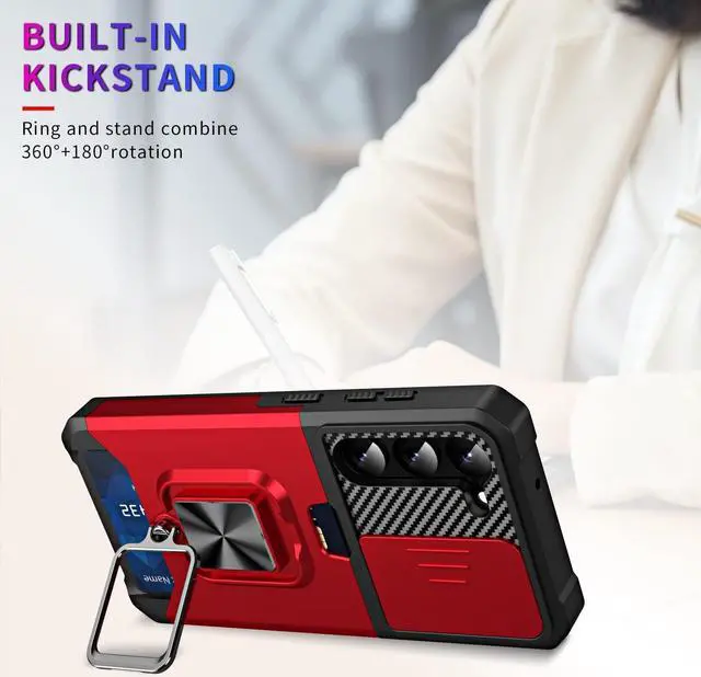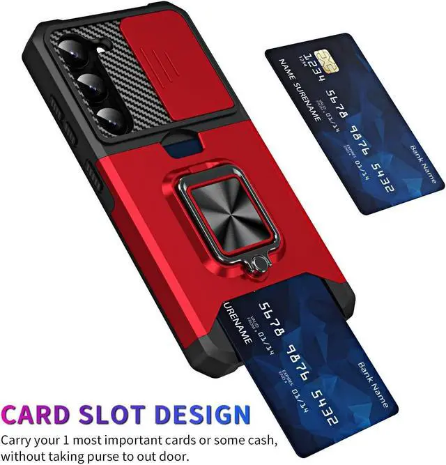 Made for the Samsung Galaxy S23 Plus 5G, the Military Grade All-In-One Ring Stand Card Case provides fantastic all-around protection and a finger loop to keep your phone in your hand, whether from accidental drops or attempted theft. Also featuring storage slot for your credit cards, ID and cash.