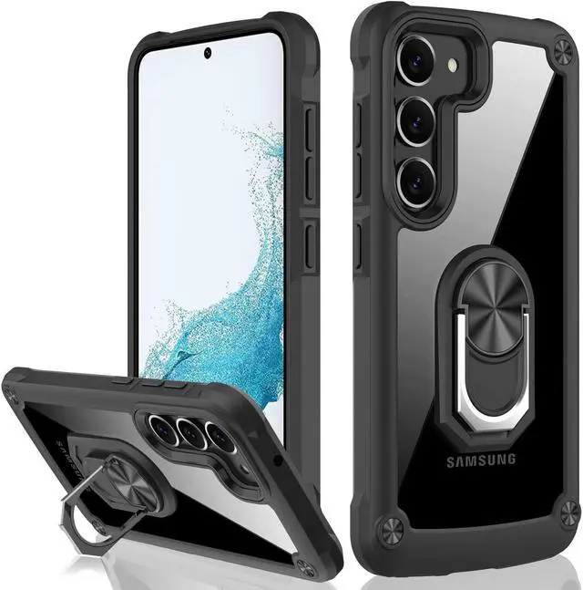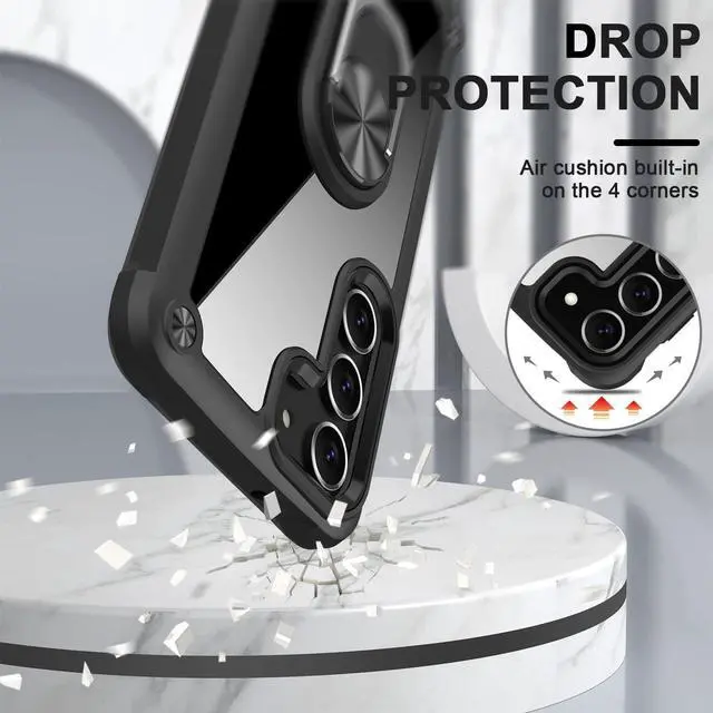 Features: Compatible with Samsung Galaxy S23 Plus 5G. Extensively drop tested, so you can feel reassured that your device is well protected. Crystal clear case provides a slim fitting stylish design and reinforced corner shock protection against damage, keeping your device looking great at all time. Made from reinforced bonded thermopolyurethane and optical grade polycarbonate materials, which makes it flexible enough to absorb punishment but hard enough to resist potential damage. The back of the case has a built-in extremely practical handle, Ring, which can be put on the finger to hold the phone more securely in your hand. Pull the ring out and have a handy viewing stand to comfortably watch your favorite show. Designed to be slim, lightweight and strong - so you can be assured that this case will add virtually no extra bulk to your phone and will still fit in your pocket with ease. Raised bezels on the case protects your phone's screen and camera from scratches. independent metal buttons for an easy, conspicuous press. Enjoy magnetic mount compatibility, as the ring holder also functions as a built-in metal plate.