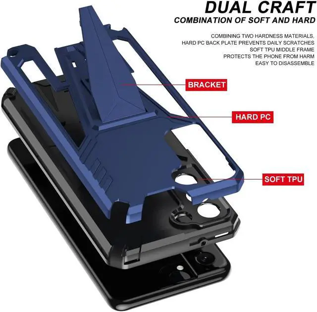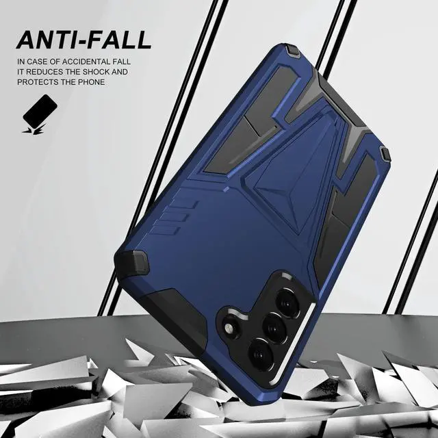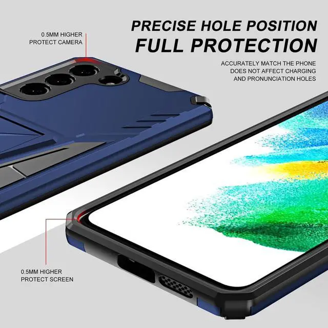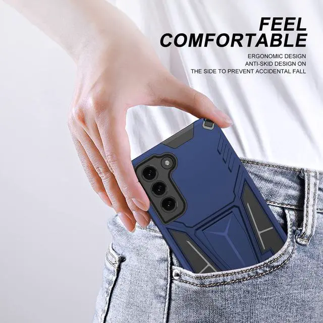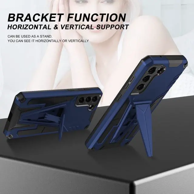 Features: Compatible with Samsung Galaxy S23 Plus 5G. Military Standard Shock Test MIL-STD 810G- 516.6 Protection. The case endured 26 drops (at 48in) on all 6 faces, 12 edges and 8 corners of the device and sustained zero damage to the appearance and internal hardware of the phone itself. Rugged composite case. Hybrid dual layered case protects from bumps, scrapes and drops. Reinforced corners are designed to deflect shock force away from your phone. Features an impact-resistant polycarbonate shell. Scratch resistant screen surround bezel. Made from a strong, durable lightweight material for long lasting protection. Textured fitting design adds no extra bulk and fits perfectly in your pocket. Located at the back of the case is a super-convenient flip-out kickstand. Folding completely flat when not in use, the kickstand can be called upon at will, allowing you to effortlessly watch media at any time and in any place. Enjoy magnetic mount compatibility, as the kickstand also functions as a built-in metal plate. Cut-outs for the main ports and features of the phone; use your device with ease.