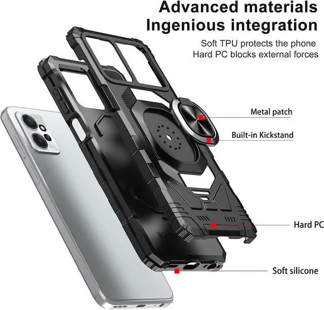 Intuitive button covers for a tactile experience. Enjoy magnetic mount compatibility, as the ring holder also functions as a built-in metal plate. Cut-outs for all the features and ports so you'll never need to take the case off.
