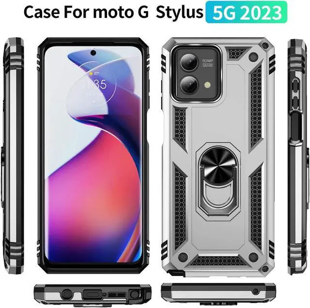 Features: Compatible with Motorola Moto G Stylus 5G 2023. Military Standard Shock Test MIL-STD 810G- 516.6 Protection. The case endured 26 drops (at 48in) on all 6 faces, 12 edges and 8 corners of the device and sustained zero damage to the appearance and internal hardware of the phone itself. Made from a special strong and lightweight durable material, providing you with long lasting protection for your smartphone without making it cumbersome. Ring holder for extra drop protection - in more ways than one. The built-it ring features a 180 & 360 degree rotating design to ensure a comfortable grip at any angle. Flip the ring out and it doubles as a kickstand to take your binge-watching experience to the next level. Unique mix material hybrid design.