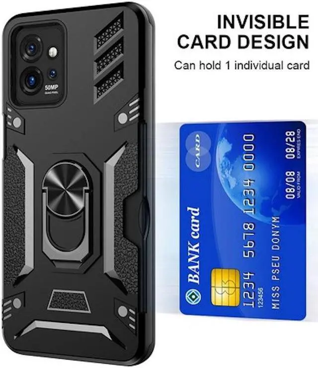 Tough Ring Grip Case with Card Slot for Motorola Moto G Stylus 5G 2023 - Black