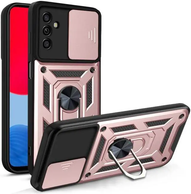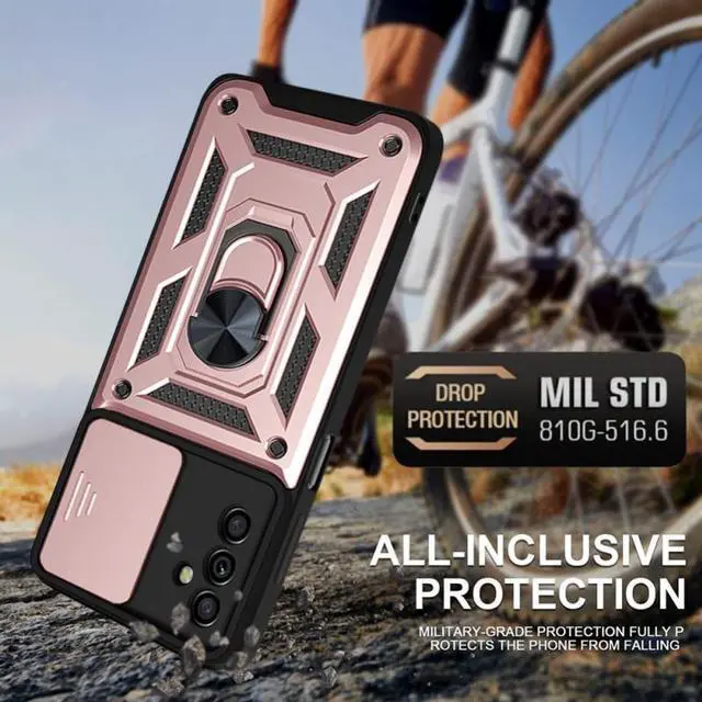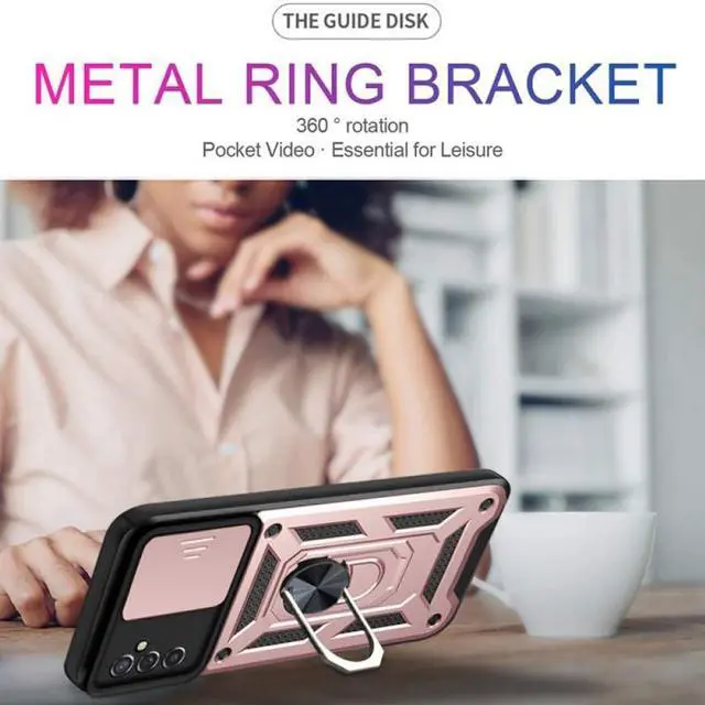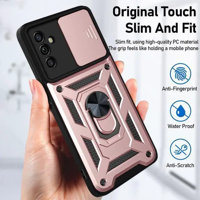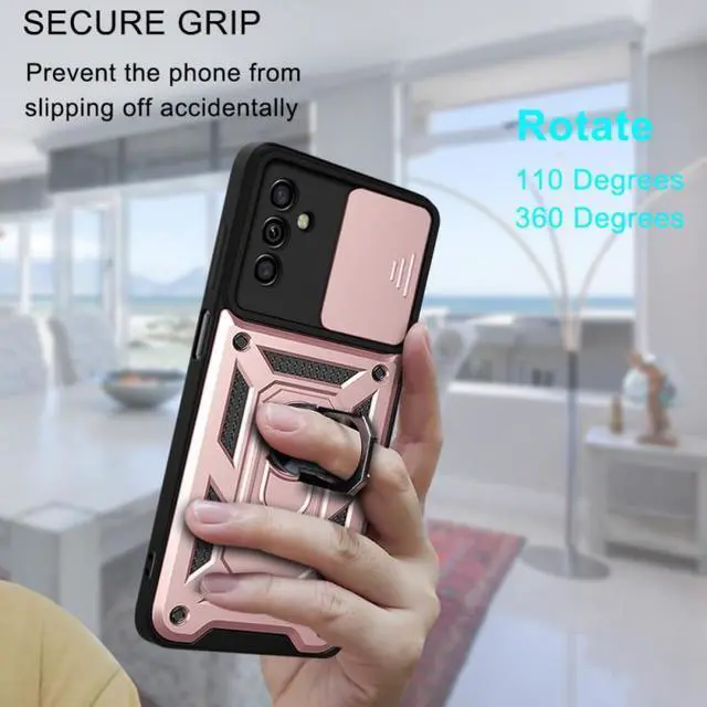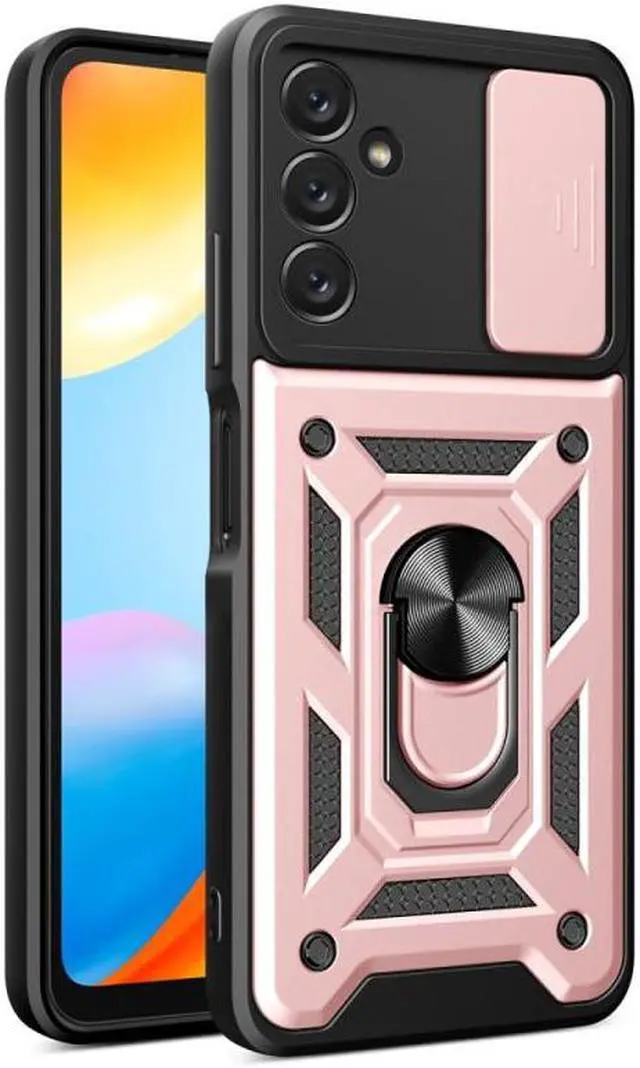 Features: Compatible with Samsung Galaxy A54 5G. Extensively drop tested, so you can feel reassured that your device is well protected. Stylish, minimalist protection for your smartphone. Premium dual-material construction with polycarbonate backing and TPU perimeter creates a sleek profile without sacrificing protection. Ring holder for extra drop protection - in more ways than one. The built-it ring features a 180 & 360 degree rotating design to ensure a comfortable grip at any angle. Flip the ring out and it doubles as a kickstand to take your binge-watching experience to the next level. Polycarbonate panel slides to lock over camera area protecting lenses as well as promoting camera security. Impact-absorbing TPU perimeter guards the device against bumps and drops. This case is effortlessly easy to install and looks great on your phone. Front bumpers raised slightly above your screen act to protect your screen when placed face down or dropped. Raised camera cut-out protects the lens from scratches when placing your phone on flat surface. Enjoy magnetic mount compatibility, as the ring holder also functions as a built-in metal plate. Precisely cutouts to preserve full use of volume buttons, charger, camera, microphone, and all other ports.