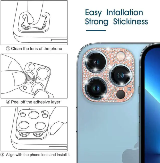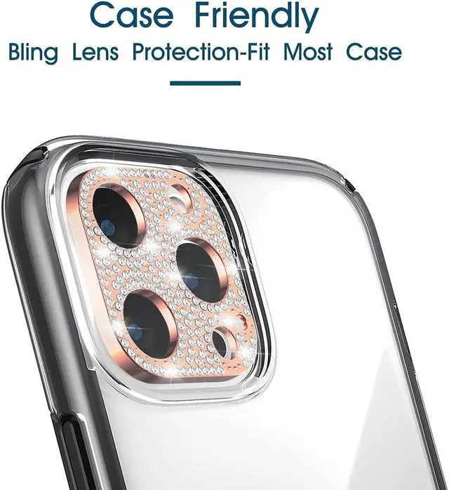 Features: Compatible with Apple iPhone 14 Pro / iPhone 14 Pro Max. Unique elegant luxury design, adopts premium bling swarovski-grade rhinestone diamond to craft out this lens protector. This protector prevents camera lens from coming into contact with any flat surface when you place the phone face up. Zinc alloy frame for maximum drop protection. Effectively protect lens without diminishing the image quality. Slim fitting design adds no extra bulk and fits perfectly. Precise cutout openings for perfect attachment. Easy application.