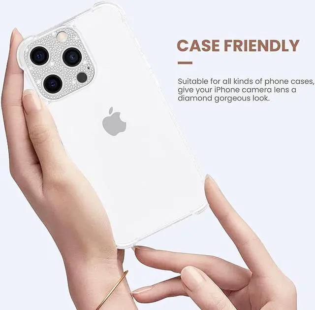 Features: Compatible with Apple iPhone 14 Pro / iPhone 14 Pro Max. Unique elegant luxury design, adopts premium bling swarovski-grade rhinestone diamond to craft out this lens protector. This protector prevents camera lens from coming into contact with any flat surface when you place the phone face up. Zinc alloy frame for maximum drop protection. Effectively protect lens without diminishing the image quality. Slim fitting design adds no extra bulk and fits perfectly. Precise cutout openings for perfect attachment. Easy application.