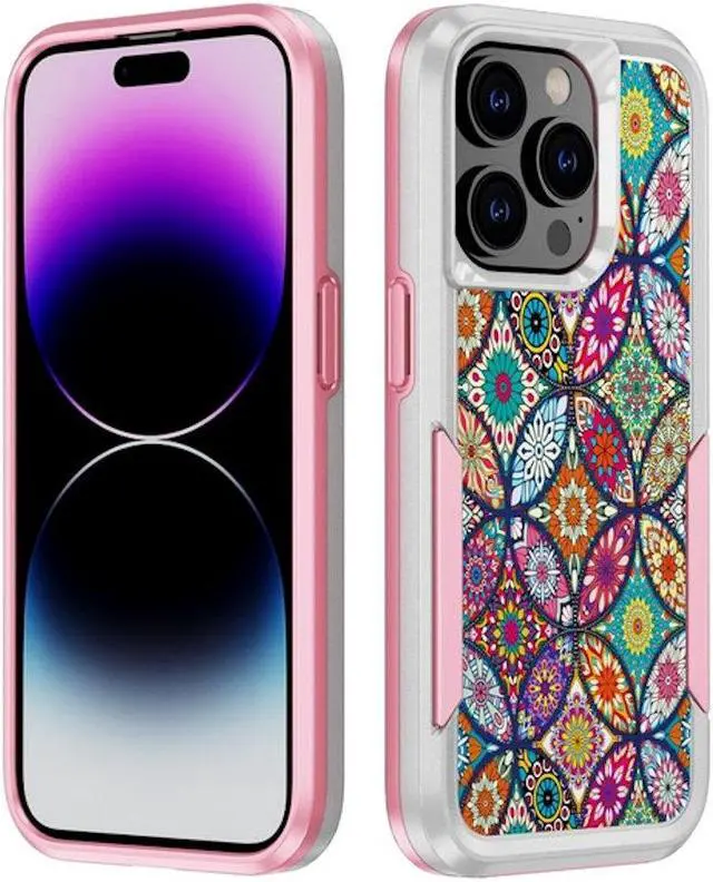 For unbeatable protection, the dual layer TUFF Hybrid Cover provides supreme defense against drops and abrasions. A soft rubberized TPU interior complete encases the Apple iPhone 14 Pro Max for shock adsorption on all sides while hardened polycarbonate shell attach to the back for a sleek look.