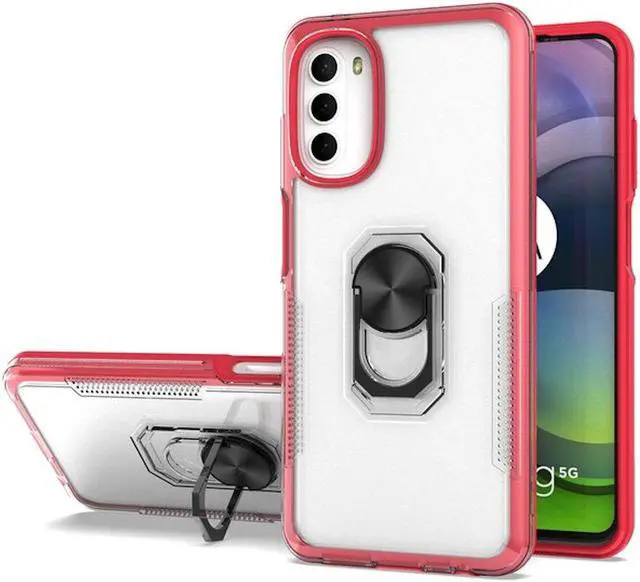 Features: Compatible with Motorola Moto G 5G 2022. Extensively drop tested, so you can feel reassured that your device is well protected. With a two piece construction, it provides great shock and impact absorption thanks to its flexible TPU polymer inner bumper which is combined with a precisely positioned transparent hard shell for added protection. The case features a tough shell, which covers the back and vulnerable edges of your phone from damage. Finger ring grip for extra drop protection - in more ways than one. The ring folds flat and out of view if you do not want or need it. But if you do, simply pull the loop out, slip your finger through and you have an extra secure grip on your phone. Flip the ring out and it doubles as a kickstand to take your binge-watching experience to the next level. Slim fitting design adds no extra bulk and fits perfectly in your pocket. The stylish and slim tough outer shell features a scratch-resistant coating so that your case will stay looking fantastic, while offering top of the range protection. Raised beveled edge offers front screen and camera protection.