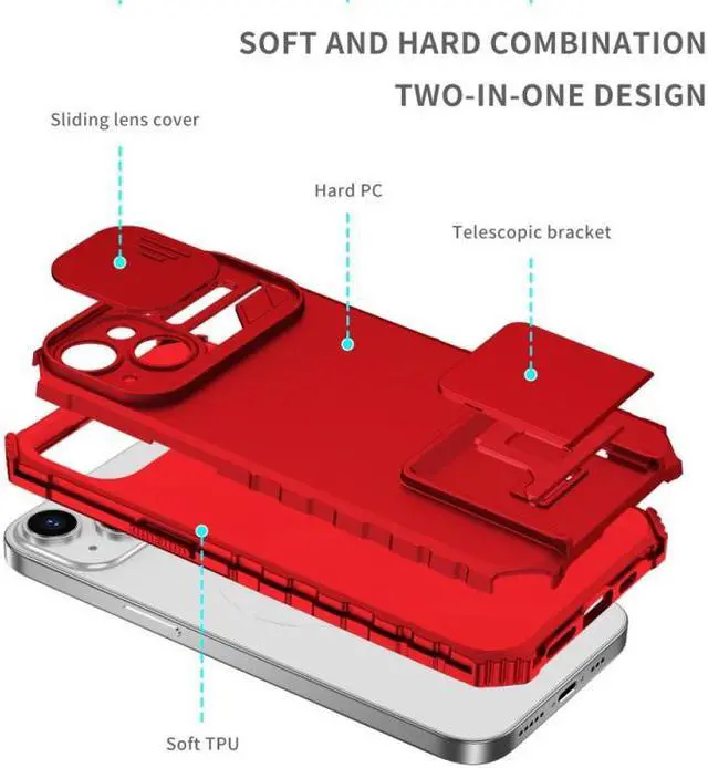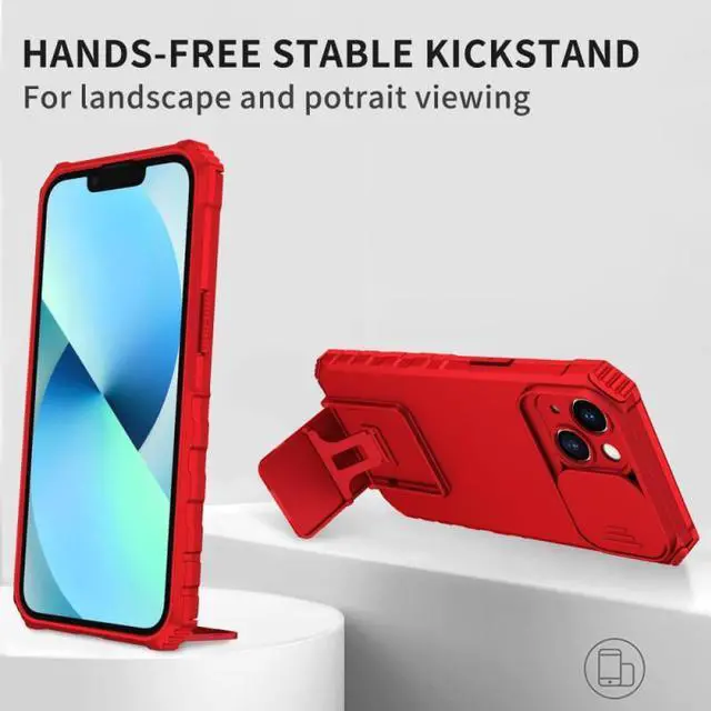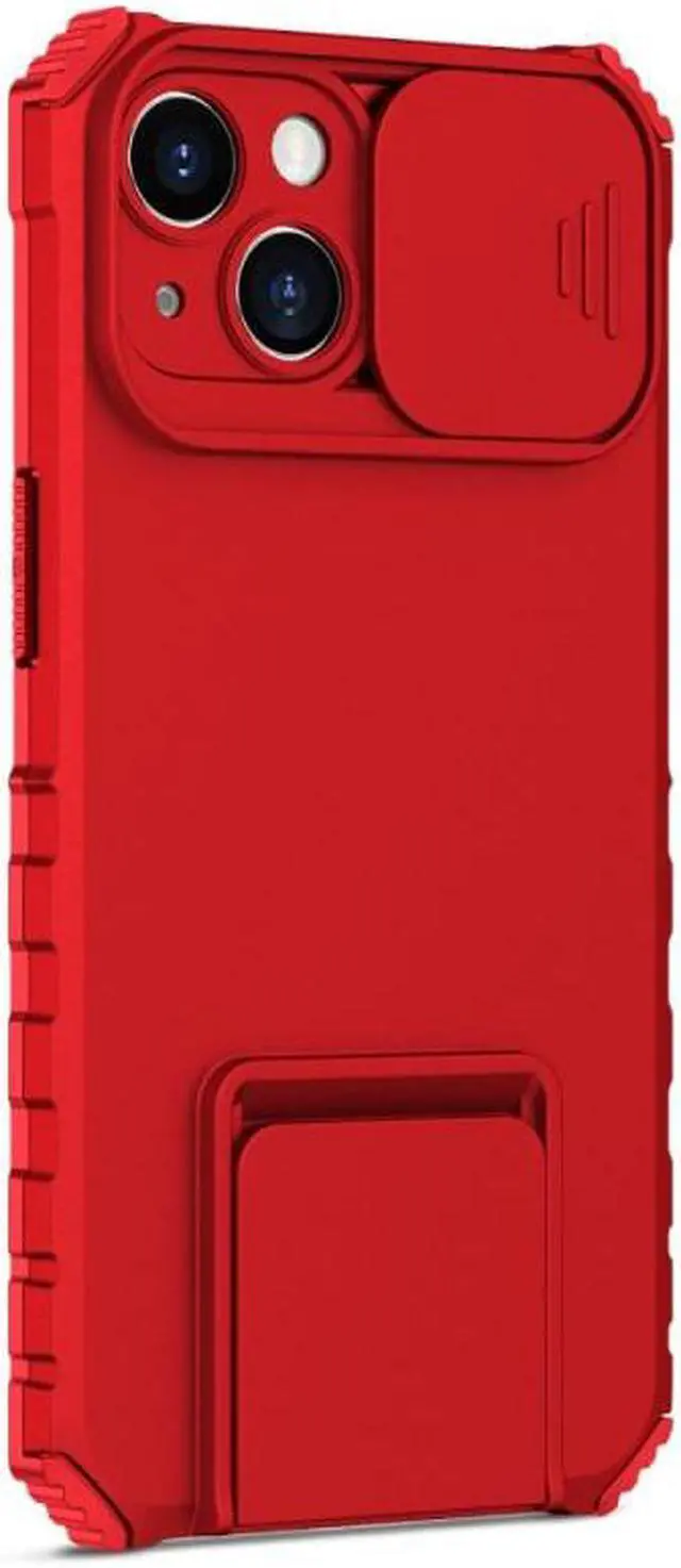 Features: Compatible with Apple iPhone 14 Plus. Extensively drop tested, so you can feel reassured that your device is well protected. Two layered case protects from bumps, scrapes and drops. Made from robust and hard-wearing materials for long-lasting protection. Privacy cover slides in front of camera when not in use. Your phone's camera can be hacked - get protected. Portable flip-out stand that pulls out to give the perfect viewing angle for videos and pictures. Non-slip coating with reinforced corners provide excellent protection where it's most needed. Etched grips at the sides aids handling. Raised bezels lift screen and camera off flat surfaces. Intuitive button covers for a tactile experience. Cut-outs for the main ports and features of the phone.