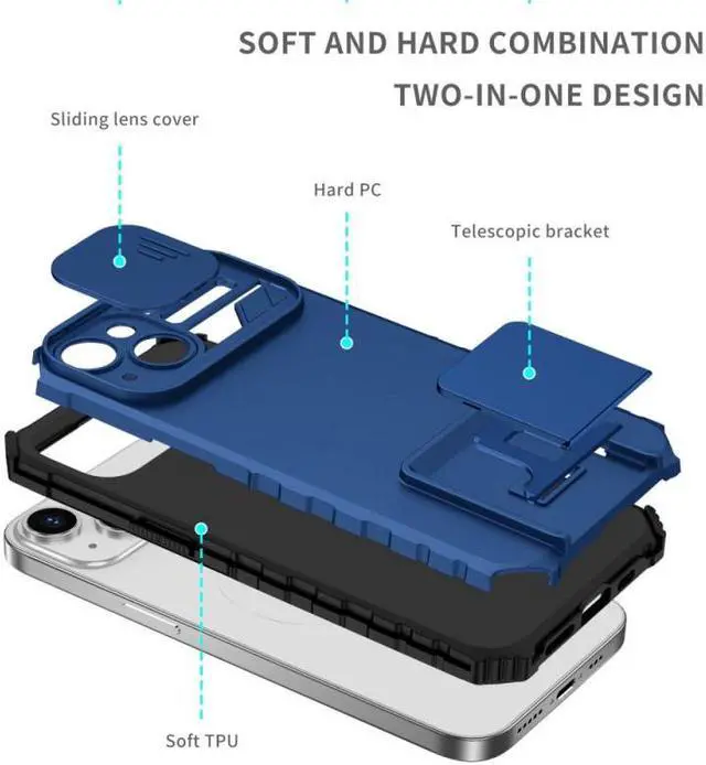 Features: Compatible with Apple iPhone 14. Extensively drop tested, so you can feel reassured that your device is well protected. Two layered case protects from bumps, scrapes and drops. Made from robust and hard-wearing materials for long-lasting protection. Privacy cover slides in front of camera when not in use. Your phone's camera can be hacked - get protected. Portable flip-out stand that pulls out to give the perfect viewing angle for videos and pictures. Non-slip coating with reinforced corners provide excellent protection where it's most needed. Etched grips at the sides aids handling. Raised bezels lift screen and camera off flat surfaces. Intuitive button covers for a tactile experience. Cut-outs for the main ports and features of the phone.