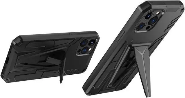 Features: Compatible with Apple iPhone 14. Extensively drop tested, so you can feel reassured that your device is well protected. Rugged composite case. Hybrid dual layered case protects from bumps, scrapes and drops. Reinforced corners are designed to deflect shock force away from your phone. Features an impact-resistant polycarbonate shell. Scratch resistant screen surround bezel. Made from a strong, durable lightweight material for long lasting protection. Textured fitting design adds no extra bulk and fits perfectly in your pocket. Located at the back of the case is a super-convenient flip-out kickstand. Folding completely flat when not in use, the kickstand can be called upon at will, allowing you to effortlessly watch media at any time and in any place. Built-in magnetic plate for using on magnetic car mount (car mount not included). Cut-outs for the main ports and features of the phone; use your device with ease.