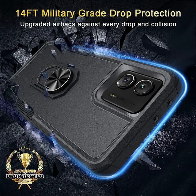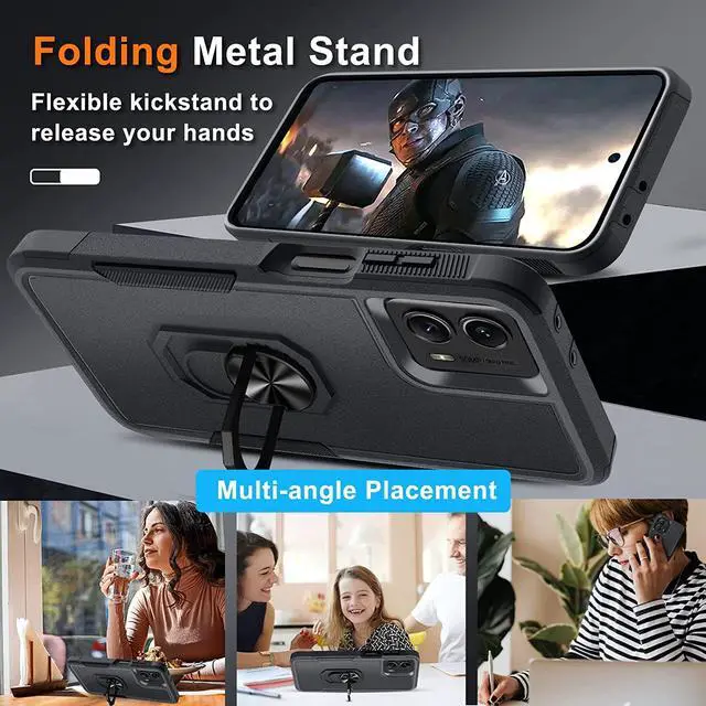 Military Grade TUFF Shockproof Hybrid Armor Case with Ring Grip for Motorola Moto G Power 5G 2023 - Black