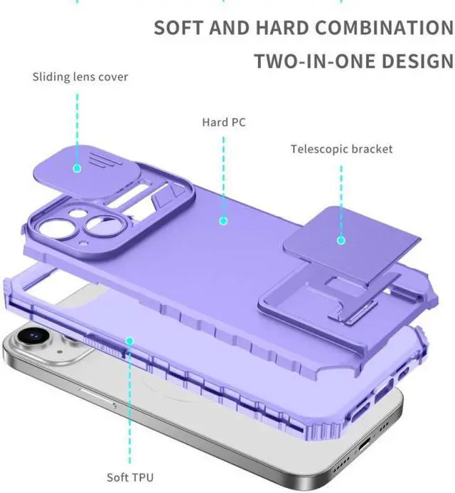 Features: Compatible with Apple iPhone 14 Plus. Extensively drop tested, so you can feel reassured that your device is well protected. Two layered case protects from bumps, scrapes and drops. Made from robust and hard-wearing materials for long-lasting protection. Privacy cover slides in front of camera when not in use. Your phone's camera can be hacked - get protected. Portable flip-out stand that pulls out to give the perfect viewing angle for videos and pictures. Non-slip coating with reinforced corners provide excellent protection where it's most needed. Etched grips at the sides aids handling. Raised bezels lift screen and camera off flat surfaces. Intuitive button covers for a tactile experience. Cut-outs for the main ports and features of the phone.