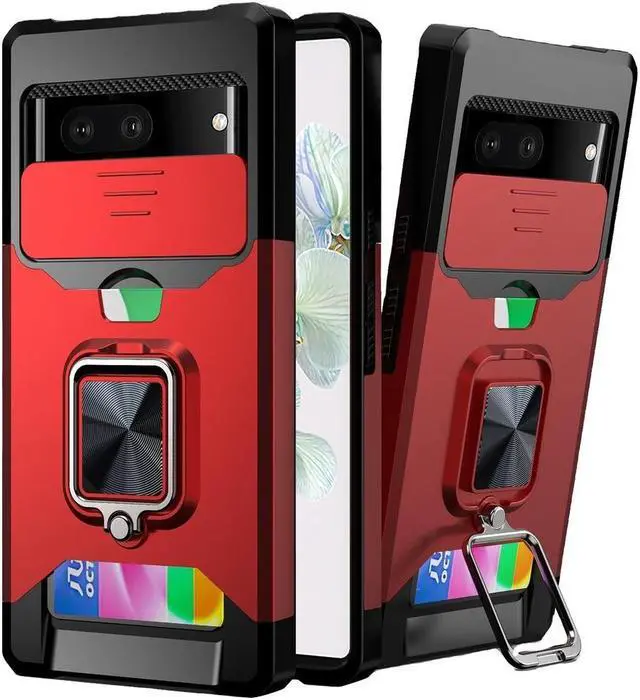 Features: Compatible with Google Pixel 7a. Military Standard Shock Test MIL-STD 810G- 516.6 Protection. The case endured 26 drops (at 48in) on all 6 faces, 12 edges and 8 corners of the device and sustained zero damage to the appearance and internal hardware of the phone itself. Stylish, minimalist protection for your smartphone. Crafted from anti-scratch TPU and a super strong polycarbonate frame, the case protects your device while complimenting its sleek aesthetics. Reinforced corners are designed to deflect shock force away from your phone and the corners are the most vulnerable areas of any phone or case. The back of the case has a built-in extremely practical handle, Ring, which can be put on the finger to hold the phone more securely in your hand. Flip the ring out and it doubles as a kickstand to take your binge-watching experience to the next level. With this case, you can leave your wallet at home thanks to the credit card slot featured on the case. Privacy camera cover for total protection. Impact-absorbing TPU perimeter guards the device against bumps and drops. This case is effortlessly easy to install and looks great on your phone.