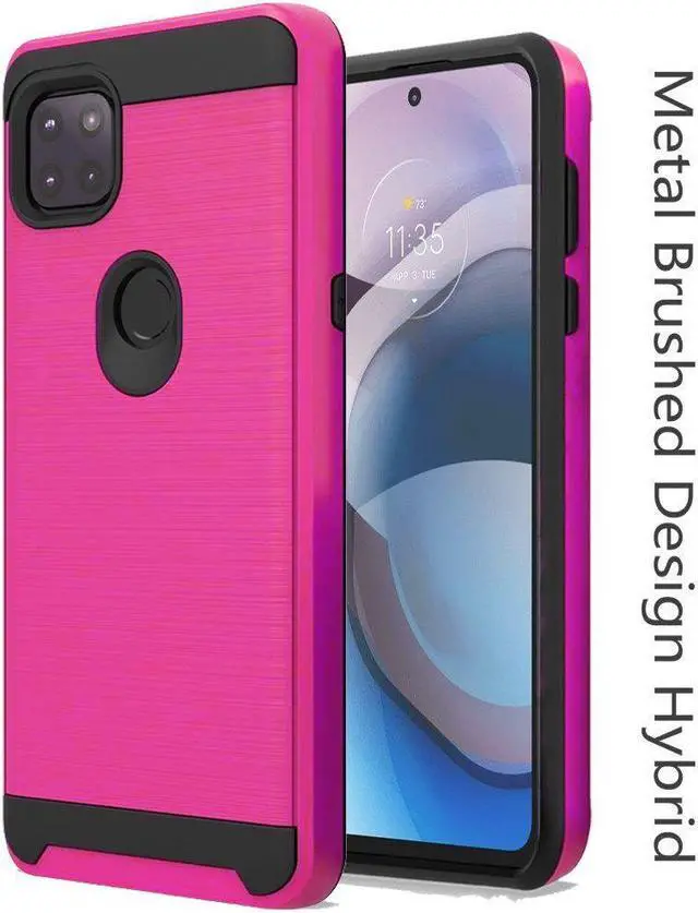 Simplicity comes in all shapes and sizes as seen with the newly designed Brushed Textured Hybrid Armor Case for the Motorola One 5G Ace. Is build of hard polycarbonate and softer TPU accents add style that’ s functional. The brushed coated polycarbonate frame add style with solid feedback that’ s obvious at the touch.