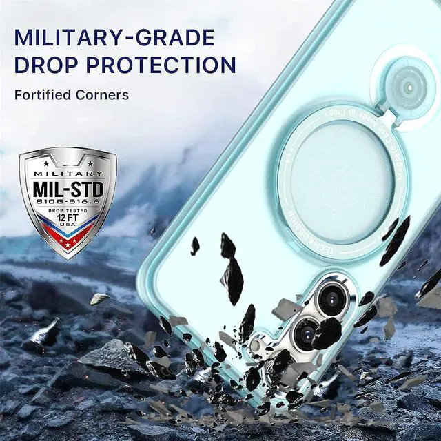 Hybrid Protection: Combines a hard back, flexible frame, and shock-absorbing corners. Stylish, minimalist protection for your smartphone. Premium dual-material construction with polycarbonate backing and TPU perimeter creates a sleek profile without sacrificing protection. Lightweight polycarbonate backing with frosted matte finish protects against scratches and dings. A silky-smooth surface feels great and resists fingerprints. Impact-absorbing TPU perimeter guards the device against bumps and drops. This case adds virtually no bulk to your device, so you can carry your phone in your pocket and use it as you normally would without any significant change. Front bumpers raised slightly above your screen act to protect your screen when placed face down or dropped. Raised camera cut-out protects the lens from scratches when placing your phone on flat surface. Antimicrobial case protection. Built-In MagSafe magnetic ring, and your phone is ready for the snap-on/snap-off satisfaction of MagSafe magnetic wireless charging, magnetic ring mounting, and a whole world of swappable magnetic accessories. Magnetic ring doubles as kickstand and ring holder. Precisely cutouts to preserve full use of volume buttons, charger, camera, microphone, and all other ports.
