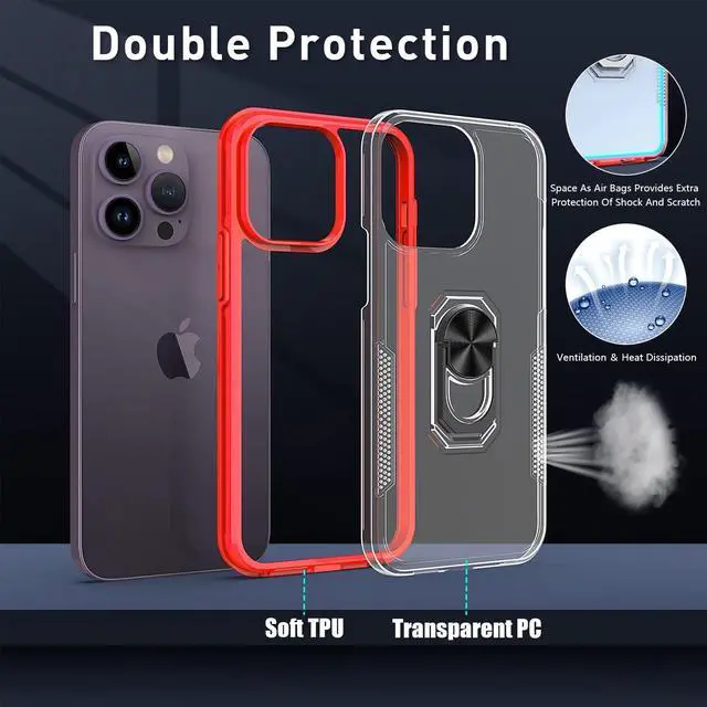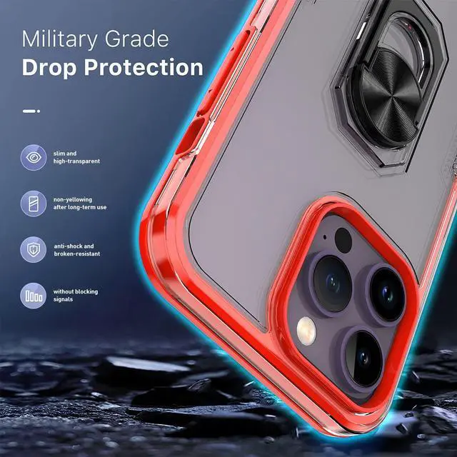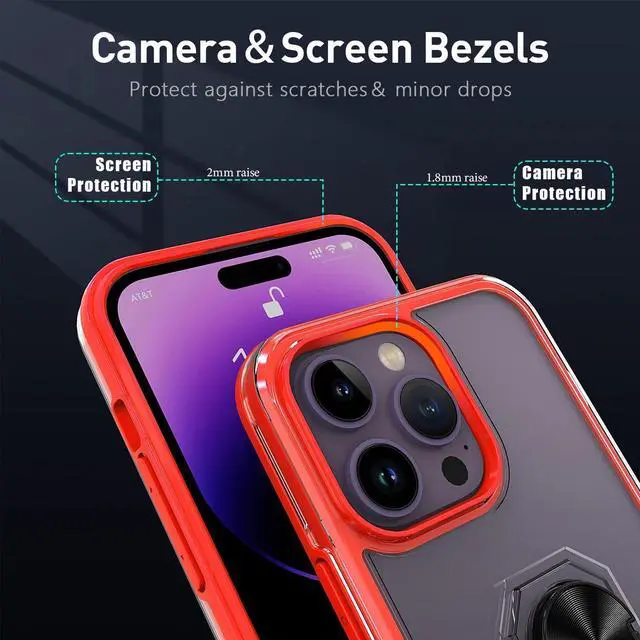 Features: Compatible with Apple iPhone 14 Pro. Extensively drop tested, so you can feel reassured that your device is well protected. With a two piece construction, it provides great shock and impact absorption thanks to its flexible TPU polymer inner bumper which is combined with a precisely positioned transparent hard shell for added protection. The case features a tough shell, which covers the back and vulnerable edges of your phone from damage. Finger ring grip for extra drop protection - in more ways than one. The ring folds flat and out of view if you do not want or need it. But if you do, simply pull the loop out, slip your finger through and you have an extra secure grip on your phone. Flip the ring out and it doubles as a kickstand to take your binge-watching experience to the next level. Slim fitting design adds no extra bulk and fits perfectly in your pocket. The stylish and slim tough outer shell features a scratch-resistant coating so that your case will stay looking fantastic, while offering top of the range protection. Raised beveled edge offers front screen and camera protection.