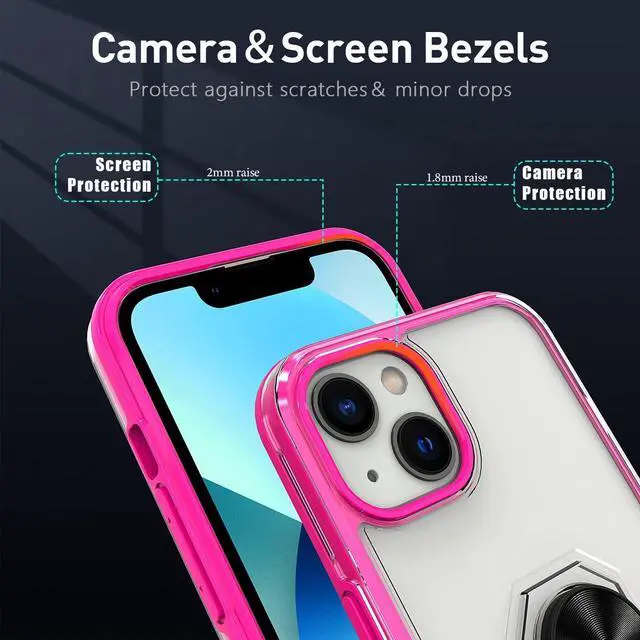 Features: Compatible with Apple iPhone 14. Extensively drop tested, so you can feel reassured that your device is well protected. With a two piece construction, it provides great shock and impact absorption thanks to its flexible TPU polymer inner bumper which is combined with a precisely positioned transparent hard shell for added protection. The case features a tough shell, which covers the back and vulnerable edges of your phone from damage. Finger ring grip for extra drop protection - in more ways than one. The ring folds flat and out of view if you do not want or need it. But if you do, simply pull the loop out, slip your finger through and you have an extra secure grip on your phone. Flip the ring out and it doubles as a kickstand to take your binge-watching experience to the next level. Slim fitting design adds no extra bulk and fits perfectly in your pocket. The stylish and slim tough outer shell features a scratch-resistant coating so that your case will stay looking fantastic, while offering top of the range protection. Raised beveled edge offers front screen and camera protection.