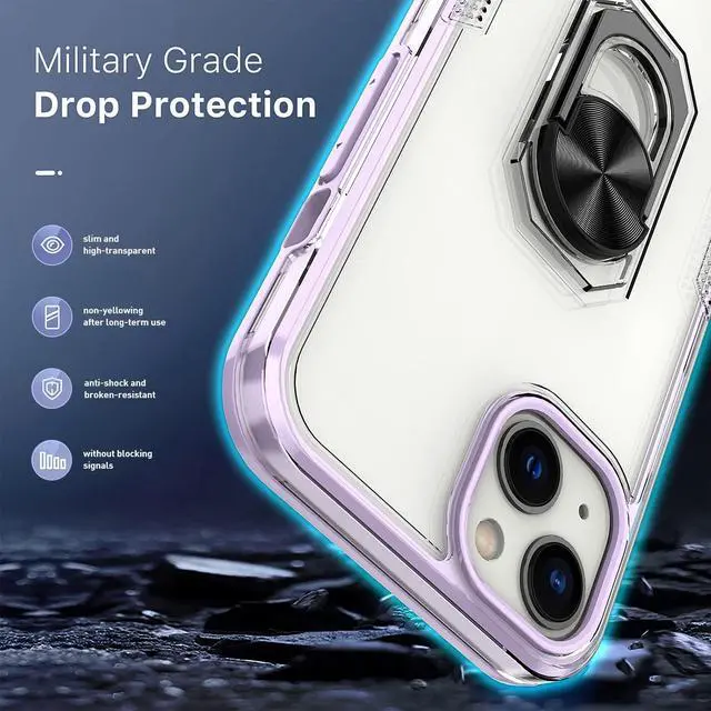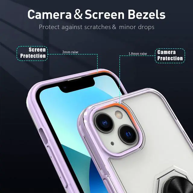 Features: Compatible with Apple iPhone 14. Extensively drop tested, so you can feel reassured that your device is well protected. With a two piece construction, it provides great shock and impact absorption thanks to its flexible TPU polymer inner bumper which is combined with a precisely positioned transparent hard shell for added protection. The case features a tough shell, which covers the back and vulnerable edges of your phone from damage. Finger ring grip for extra drop protection - in more ways than one. The ring folds flat and out of view if you do not want or need it. But if you do, simply pull the loop out, slip your finger through and you have an extra secure grip on your phone. Flip the ring out and it doubles as a kickstand to take your binge-watching experience to the next level. Slim fitting design adds no extra bulk and fits perfectly in your pocket. The stylish and slim tough outer shell features a scratch-resistant coating so that your case will stay looking fantastic, while offering top of the range protection. Raised beveled edge offers front screen and camera protection.