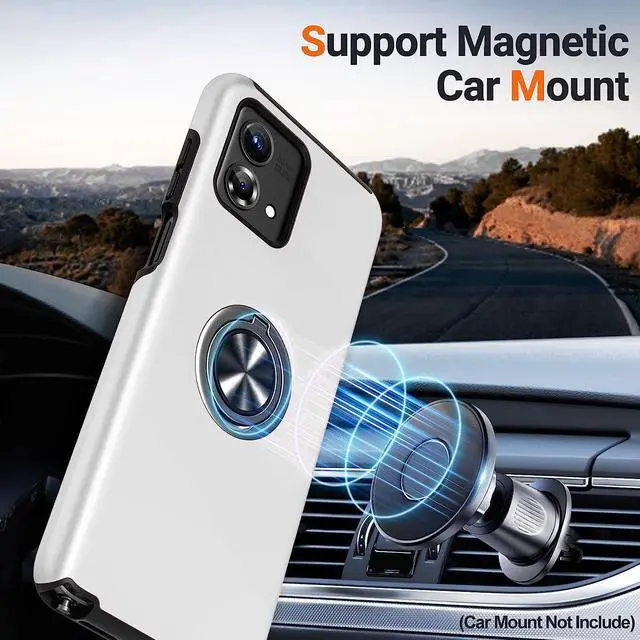 Features: Compatible with Motorola Moto G Stylus 5G 2023. Made from reinforced bonded thermopolyurethane and high quality polycarbonate materials, which makes it flexible enough to absorb punishment but hard enough to resist potential damage. 360° rotating ring grip. Horizontal kickstand. Ultra-slim, lightweight and minimal design. Equipped with two-piece design, you can easily pop the case on and off with ease while still feeling ultimately protected. Get maximum safety and easy access to all buttons and ports from raised bezel edges, shock-absorbing corners, and a non-slip bumper grip. Enjoy magnetic mount compatibility, as the ring holder also functions as a built-in metal plate.