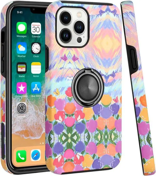 Features: Compatible with Apple iPhone 14 Pro. Made from reinforced bonded thermopolyurethane and high quality polycarbonate materials, which makes it flexible enough to absorb punishment but hard enough to resist potential damage. 360° rotating ring grip. Horizontal kickstand. Ultra-slim, lightweight and minimal design. Equipped with two-piece design, you can easily pop the case on and off with ease while still feeling ultimately protected. Get maximum safety and easy access to all buttons and ports from raised bezel edges, shock-absorbing corners, and a non-slip bumper grip. Enjoy magnetic mount compatibility, as the ring holder also functions as a built-in metal plate.
