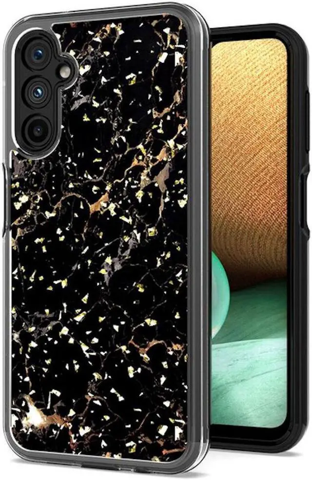 Features: Compatible with Samsung Galaxy A14 5G. Extensively drop tested, so you can feel reassured that your device is well protected. With a two piece construction, it provides great shock and impact absorption thanks to its flexible TPU polymer inner bumper which is combined with a precisely positioned hard shell for added protection. Embedded gold flakes design. The case features a tough shell, which covers the back and vulnerable edges of your phone from damage. Slim fitting design adds no extra bulk and fits perfectly in your pocket. The stylish and slim tough outer shell features a scratch-resistant coating so that your case will stay looking fantastic, while offering top of the range protection. Raised beveled edge offers front screen and camera protection. Embossed buttons for an easy, conspicuous press. Features cut-outs for the ports and features including the charging connector and camera.