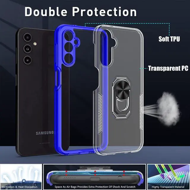 Features: Compatible with Samsung Galaxy A14 5G. Extensively drop tested, so you can feel reassured that your device is well protected. With a two piece construction, it provides great shock and impact absorption thanks to its flexible TPU polymer inner bumper which is combined with a precisely positioned transparent hard shell for added protection. The case features a tough shell, which covers the back and vulnerable edges of your phone from damage. Finger ring grip for extra drop protection - in more ways than one. The ring folds flat and out of view if you do not want or need it. But if you do, simply pull the loop out, slip your finger through and you have an extra secure grip on your phone. Flip the ring out and it doubles as a kickstand to take your binge-watching experience to the next level. Slim fitting design adds no extra bulk and fits perfectly in your pocket. The stylish and slim tough outer shell features a scratch-resistant coating so that your case will stay looking fantastic, while offering top of the range protection. Raised beveled edge offers front screen and camera protection.