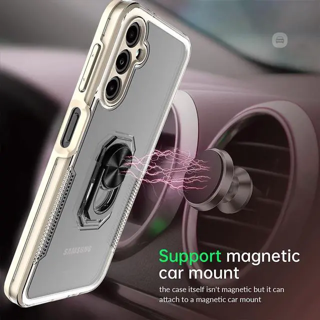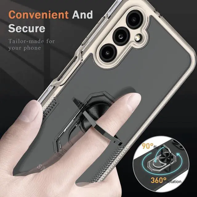 Integrated camera lens bumper protector protects the lens from accidental drops. Embossed buttons for an easy, conspicuous press. Enjoy magnetic mount compatibility, as the ring holder also functions as a built-in metal plate. Features cut-outs for the ports and features including the charging connector and camera.