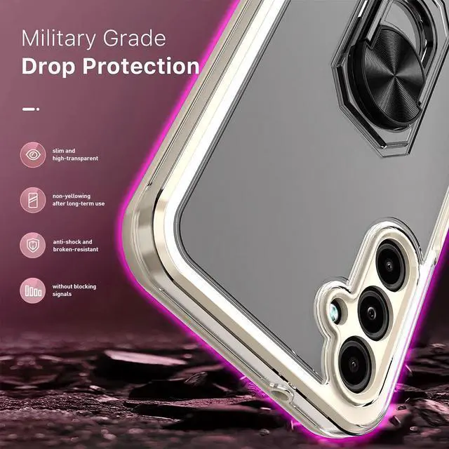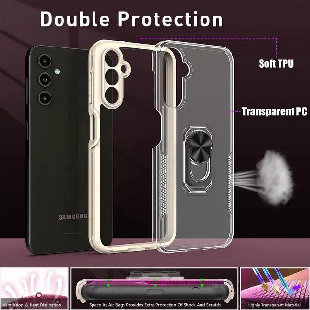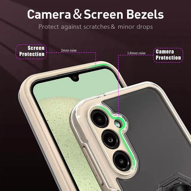 Features: Compatible with Samsung Galaxy A14 5G. Extensively drop tested, so you can feel reassured that your device is well protected. With a two piece construction, it provides great shock and impact absorption thanks to its flexible TPU polymer inner bumper which is combined with a precisely positioned transparent hard shell for added protection. The case features a tough shell, which covers the back and vulnerable edges of your phone from damage. Finger ring grip for extra drop protection - in more ways than one. The ring folds flat and out of view if you do not want or need it. But if you do, simply pull the loop out, slip your finger through and you have an extra secure grip on your phone. Flip the ring out and it doubles as a kickstand to take your binge-watching experience to the next level. Slim fitting design adds no extra bulk and fits perfectly in your pocket. The stylish and slim tough outer shell features a scratch-resistant coating so that your case will stay looking fantastic, while offering top of the range protection. Raised beveled edge offers front screen and camera protection.