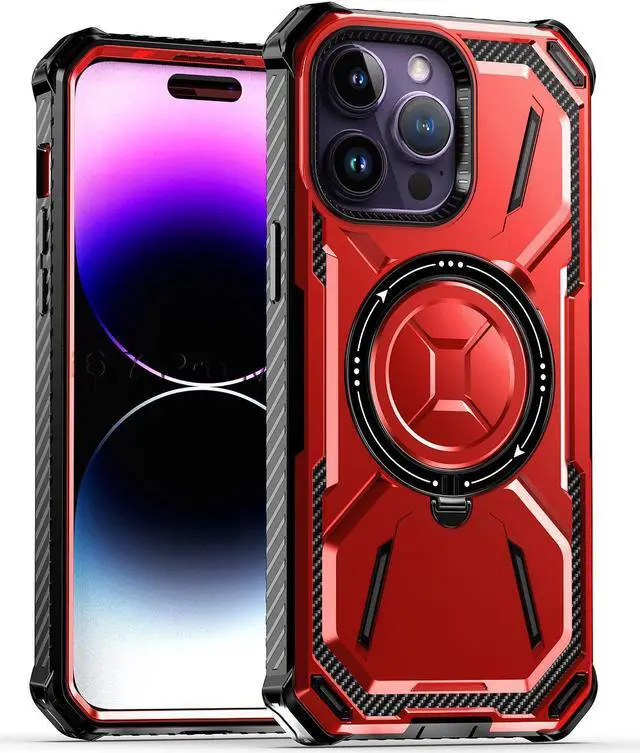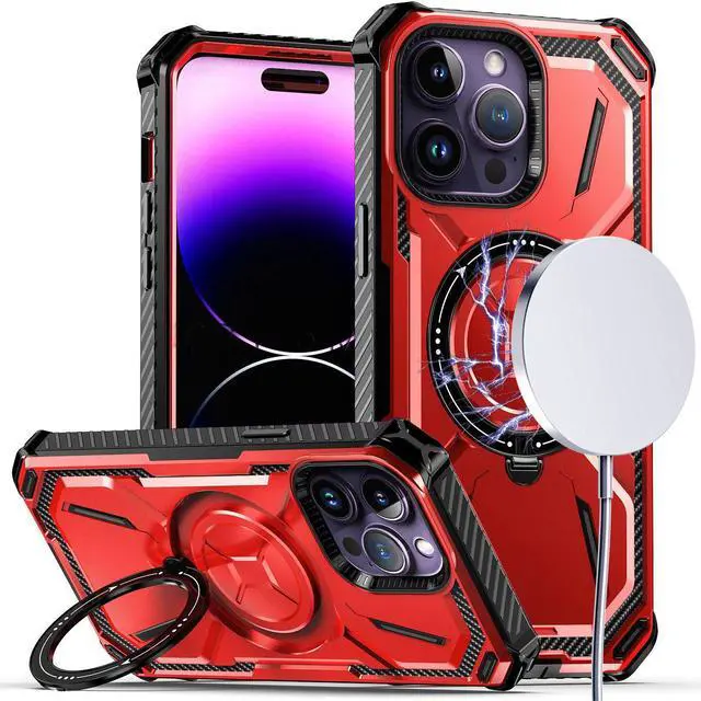 MagSafe Compatible Military Grade Hybrid Case with Kickstand Ring Holder for iPhone 12 / iPhone 12 Pro - Red