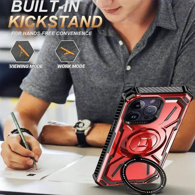 Features: Compatible with Apple iPhone 12 / iPhone 12 Pro. Designed to interact with Apple’ s MagSafe ecosystem. Magnetic ring for strengthened MagSafe connections. Compatible with Apple MagSafe chargers and accessories so you can power up without removing the case. Built-in kickstand doubles as ring holder.
