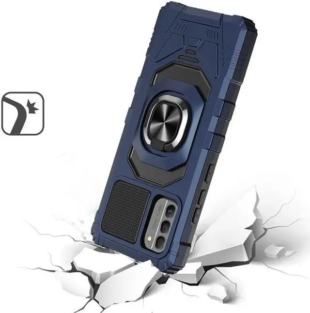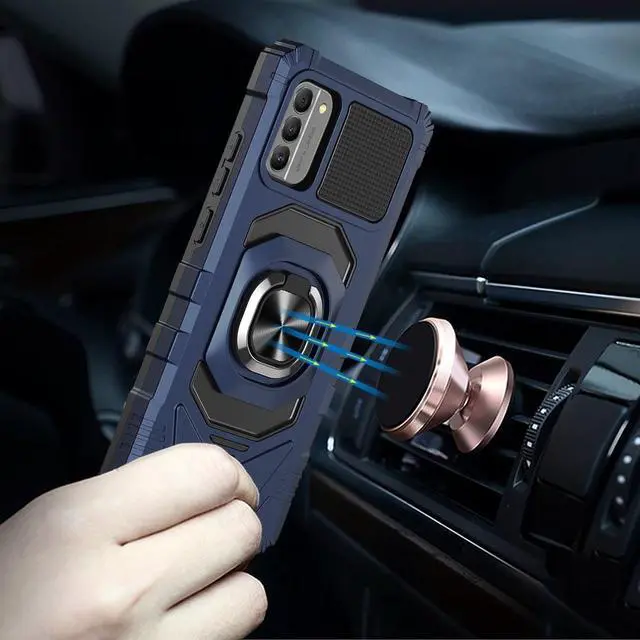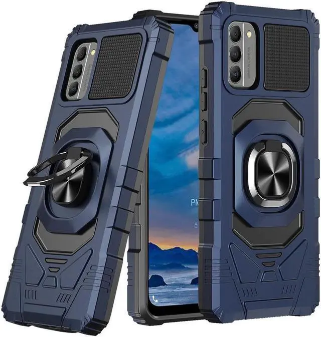 Features: Compatible with Nokia G400 5G. Extensively drop tested, so you can feel reassured that your device is well protected. Made from reinforced bonded thermopolyurethane and high quality polycarbonate materials, which makes it flexible enough to absorb punishment but hard enough to resist potential damage. Ring grip for extra drop protection - in more ways than one. The ring can also perform as a handy viewing stand. Just pull the loop out to its full extent and rest your phone at an angle on a flat surface. The loop will prop the phone up at a perfect viewing angle for watching media. Four corners with beveled exterior offering strong resistance to impact and bumps. Reinforced TPU bumper edges provide excellent protection where it's most needed. The selected materials used have a non-slip coating that provides you with extra grip for your phone, which minimizes the chance of dropping your device. Slim fitting design adds no very little bulk and fits perfectly in your pocket. Raised bezels on the case protects your screen and camera from scratches and dirt. Signature lip designed to protect your device and camera lens from flat falls.