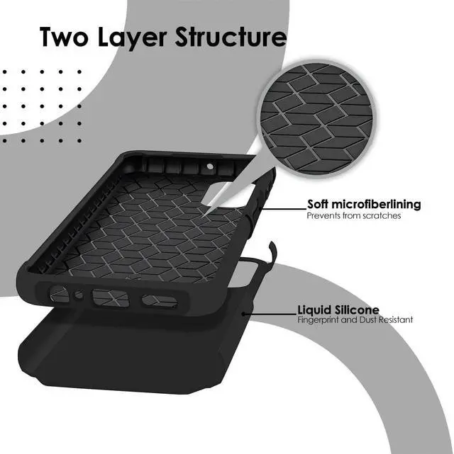 Layer 2: One-piece custom molded polycarbonate shell. 9 ft. drop protection to ensure safety from accident falls. The air cushion corners and bumper edges reduces impact force. Raised-edge bezel protects the screen and camera. Soft-touch finish. Scratch & discoloration resistant. Tactile buttons. Enjoy magnetic mount compatibility, as the ring holder also functions as a built-in metal plate. Precise cutouts provide full access to your phone’ s important features, ports and button.