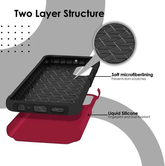 Layer 2: One-piece custom molded polycarbonate shell. 9 ft. drop protection to ensure safety from accident falls. The air cushion corners and bumper edges reduces impact force. Raised-edge bezel protects the screen and camera. Soft-touch finish. Scratch & discoloration resistant. Tactile buttons. Enjoy magnetic mount compatibility, as the ring holder also functions as a built-in metal plate. Precise cutouts provide full access to your phone’ s important features, ports and button.