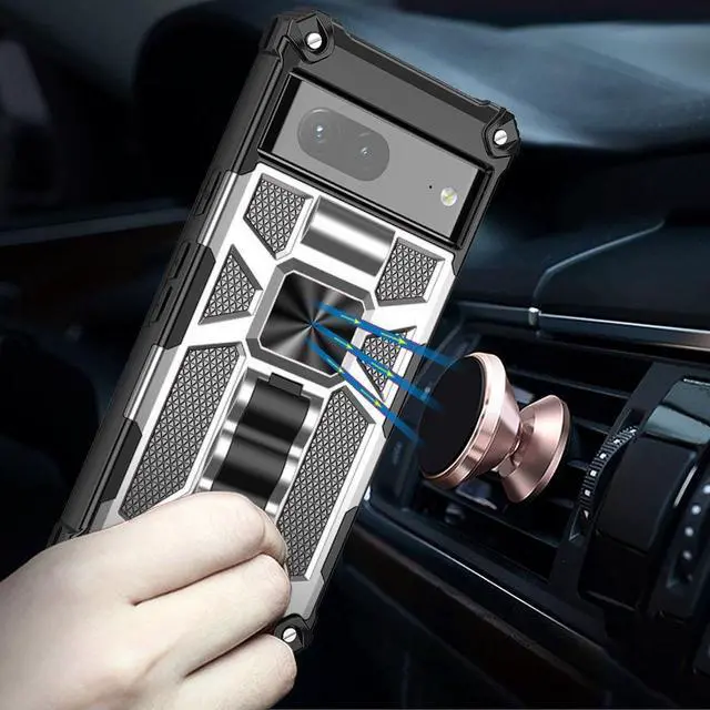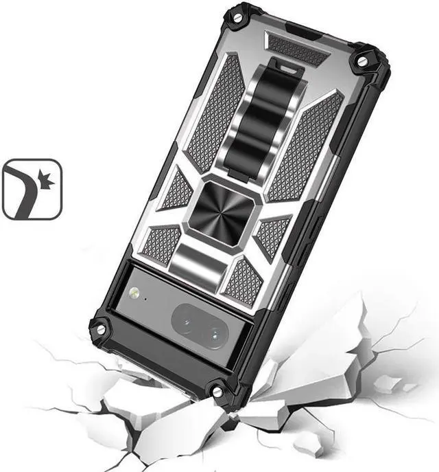 Features: Compatible with Google Pixel 7a. Military Standard Shock Test MIL-STD 810G- 516.6 Protection. The case endured 26 drops (at 48in) on all 6 faces, 12 edges and 8 corners of the device and sustained zero damage to the appearance and internal hardware of the phone itself. Featuring a robust military design with premium rugged protection. Composite layers of shock-absorbing thermopolyurethane and ultra-resistant reinforced polycarbonate take all the punishment your daily travel and use can throw at your phone, including drop protection. Reinforced air cushion corners are designed to deflect shock force away from your phone and the corners are the most vulnerable areas of any phone or case. Located at the back of the case is a super-convenient flip-out kickstand. Folding completely flat when not in use, the kickstand can be called upon at will, allowing you to effortlessly watch media at any time and in any place. The sleek military styling and ruggedized construction of the case combines to create a case that perfectly compliments the phone's stunning design. Raised bezels on the case protects your screen and camera from scratches. Intuitive button covers for a tactile experience.