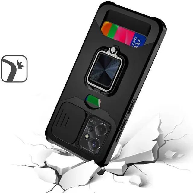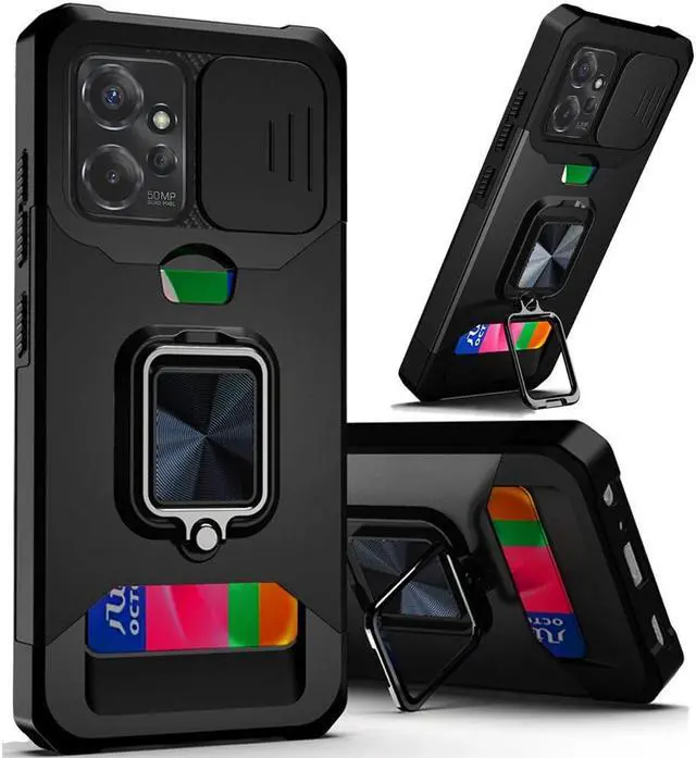 Features: Compatible with Motorola Moto G Power 5G 2023. Military Standard Shock Test MIL-STD 810G- 516.6 Protection. The case endured 26 drops (at 48in) on all 6 faces, 12 edges and 8 corners of the device and sustained zero damage to the appearance and internal hardware of the phone itself. Stylish, minimalist protection for your smartphone. Crafted from anti-scratch TPU and a super strong polycarbonate frame, the case protects your device while complimenting its sleek aesthetics. Reinforced corners are designed to deflect shock force away from your phone and the corners are the most vulnerable areas of any phone or case. The back of the case has a built-in extremely practical handle, Ring, which can be put on the finger to hold the phone more securely in your hand. Flip the ring out and it doubles as a kickstand to take your binge-watching experience to the next level. With this case, you can leave your wallet at home thanks to the credit card slot featured on the case. Privacy camera cover slides left or right for total protection. Impact-absorbing TPU perimeter guards the device against bumps and drops.