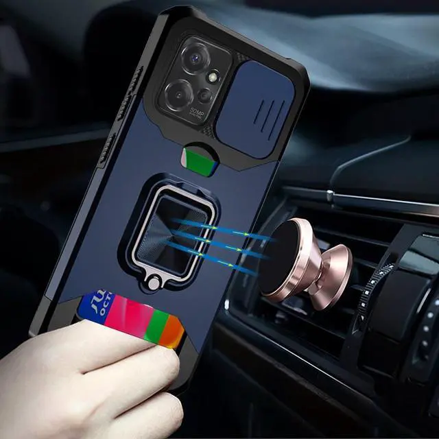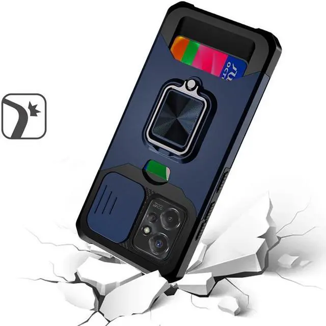 Features: Compatible with Motorola Moto G Power 5G 2023. Military Standard Shock Test MIL-STD 810G- 516.6 Protection. The case endured 26 drops (at 48in) on all 6 faces, 12 edges and 8 corners of the device and sustained zero damage to the appearance and internal hardware of the phone itself. Stylish, minimalist protection for your smartphone. Crafted from anti-scratch TPU and a super strong polycarbonate frame, the case protects your device while complimenting its sleek aesthetics. Reinforced corners are designed to deflect shock force away from your phone and the corners are the most vulnerable areas of any phone or case. The back of the case has a built-in extremely practical handle, Ring, which can be put on the finger to hold the phone more securely in your hand. Flip the ring out and it doubles as a kickstand to take your binge-watching experience to the next level. With this case, you can leave your wallet at home thanks to the credit card slot featured on the case. Privacy camera cover slides left or right for total protection. Impact-absorbing TPU perimeter guards the device against bumps and drops.