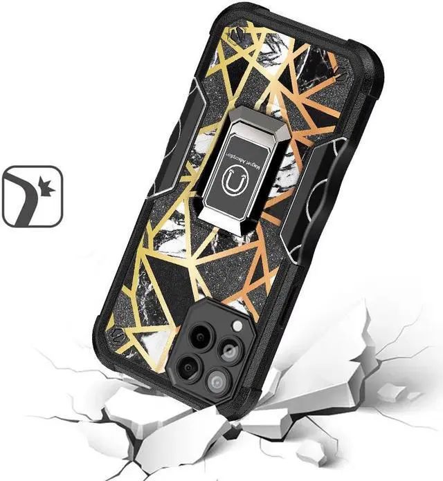 to withstands 4X MIL-STD (810G- 516.6 ), meaning the cases have been dropped at 2 meters with zero damage done to the device. Featuring a robust multi-layered design, the case provides extreme protection for your device. This hard-wearing tough case safe-guards your phone against whatever life can throw at, keeping it secure at all times even in the most extreme of conditions. Grooved Sides - Like a firm handshake with your phone. A soft rubberized TPU inner core tightly grips to your phone while absorbs shock and cushions the phone from drops and impact. Patented hybrid case with ridge polycarbonate hard shell for armor-like protection. Reinforced air cushion corners provide excellent protection where it's most needed. The back of the case has a built-in extremely practical handle, Ring, which can be put on the finger to hold the phone more securely in your hand. Pull the ring out and have a handy viewing stand to comfortably watch your favorite show. Raised front bezel and camera opening prevent scratches to the screen and camera lens. Integrated camera lens bumper protector protects the lens from accidental drops.
