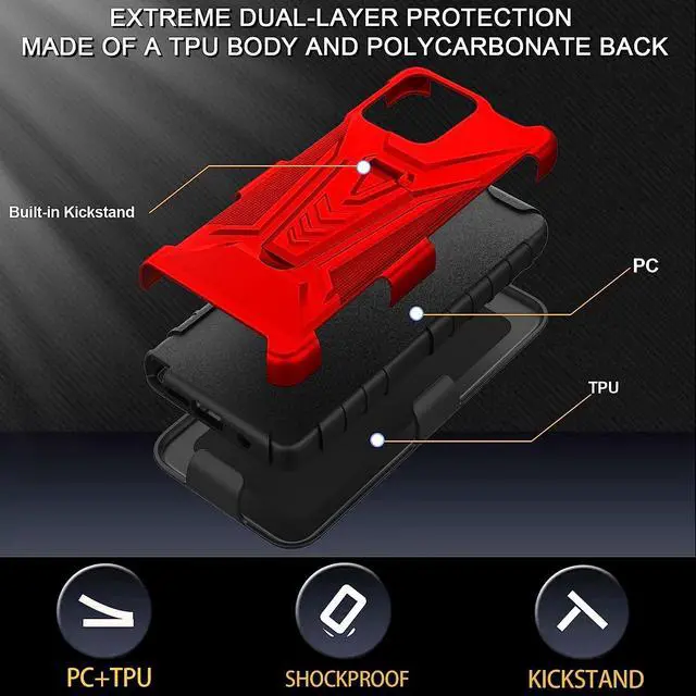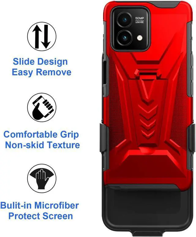 Protect your new Motorola Moto G Stylus 5G 2023 with the 3-IN-1 Advanced Armor Hybrid Kickstand Case. The ultra-strong case with textured polycarbonate shell, and a durable TPU interior skin for reinforced protection. This most rugged smartphone accessory also includes a detachable holster / belt clip that doubles as a viewing stand and screen protector to protect your screen from scratches.