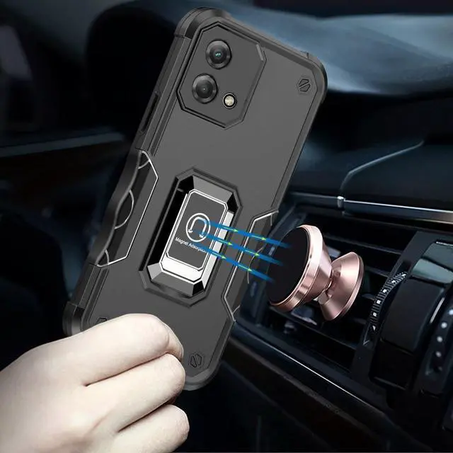 to withstands 4X MIL-STD (810G- 516.6 ), meaning the cases have been dropped at 2 meters with zero damage done to the device. Featuring a robust multi-layered design, the case provides extreme protection for your device. This hard-wearing tough case safe-guards your phone against whatever life can throw at, keeping it secure at all times even in the most extreme of conditions. Grooved Sides - Like a firm handshake with your phone. A soft rubberized TPU inner core tightly grips to your phone while absorbs shock and cushions the phone from drops and impact. Patented hybrid case with ridge polycarbonate hard shell for armor-like protection. Reinforced air cushion corners provide excellent protection where it's most needed. The back of the case has a built-in extremely practical handle, Ring, which can be put on the finger to hold the phone more securely in your hand. Pull the ring out and have a handy viewing stand to comfortably watch your favorite show. Raised front bezel and camera opening prevent scratches to the screen and camera lens. Integrated camera lens bumper protector protects the lens from accidental drops.