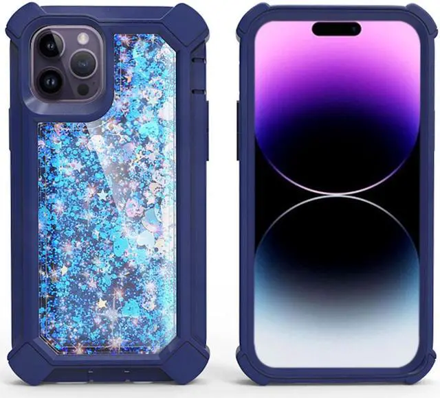 Features: Compatible with Apple iPhone 14. Certified U. S. Military Standard Shock Test MIL-STD 810G- 516.6 Protection. The case endured 26 drops (at 48in) on all 6 faces, 12 edges and 8 corners of the device and sustained zero damage to the appearance and internal hardware of the phone itself. With your phone sealed in, the case equips your phone with some of the toughest protection around. Shake me, flip me, turn me and let the dynamic waterfall effect of this case captivate you with its cascading sparkle and tumbling glitter. Enhance the gorgeous aesthetic of your new smartphone with this shimmering, elegant and eye-catching case. Mesmerizing floating glitter mix with colorful iridescent specks in clear liquid case. Quicksand glitters gracefully fall as you move your phone. The glitter containing compartment is filled with a certified and totally safe mineral oil, so you can expect no nasty surprises. Enhanced protective air cushion corner design. Battling shocks, scrapes, drops and scratches, the case is truly ready for an adventure, making it the perfect case for any outdoor enthusiast and for those who want to safe-guard their precious smartphone from the rigors and strains of day-to-day life.