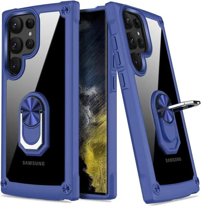 Features: Compatible with Samsung Galaxy S23 Ultra 5G. Extensively drop tested, so you can feel reassured that your device is well protected. Crystal clear case provides a slim fitting stylish design and reinforced corner shock protection against damage, keeping your device looking great at all time. Made from reinforced bonded thermopolyurethane and optical grade polycarbonate materials, which makes it flexible enough to absorb punishment but hard enough to resist potential damage. The back of the case has a built-in extremely practical handle, Ring, which can be put on the finger to hold the phone more securely in your hand. Pull the ring out and have a handy viewing stand to comfortably watch your favorite show. Designed to be slim, lightweight and strong - so you can be assured that this case will add virtually no extra bulk to your phone and will still fit in your pocket with ease. Raised bezels on the case protects your phone's screen and camera from scratches. independent metal buttons for an easy, conspicuous press. Enjoy magnetic mount compatibility, as the ring holder also functions as a built-in metal plate.