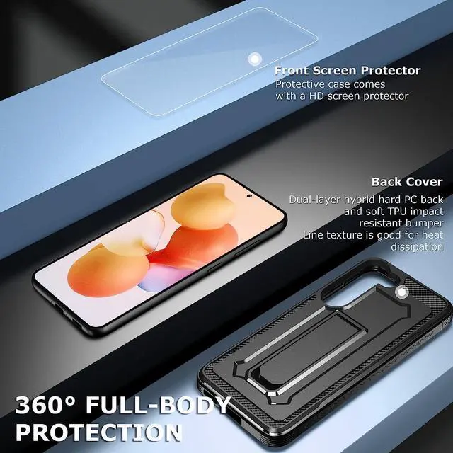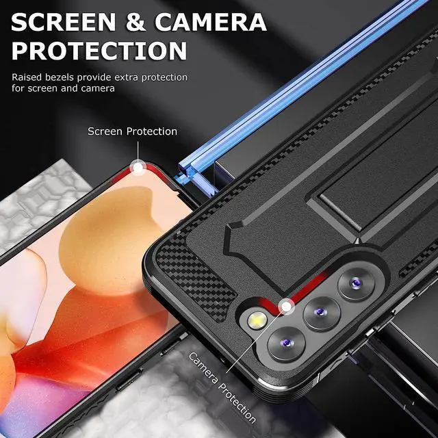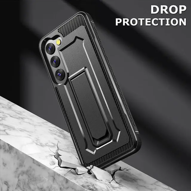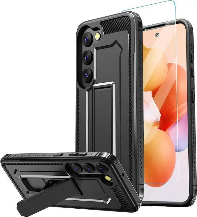 Features: Compatible with Samsung Galaxy S23 5G. Extensively drop tested, so you can feel reassured that your device is well protected. Rugged composite case. Reinforced corners are designed to deflect shock force away from your phone. Scratch resistant screen surround bezel. Made from a strong, durable lightweight material for long lasting protection. Textured fitting design adds no extra bulk and fits perfectly in your pocket. Located at the back of the case is a super-convenient flip-out kickstand. Folding completely flat when not in use, the kickstand can be called upon at will, allowing you to effortlessly watch media at any time and in any place. 9H hardness tempered glass screen protector prevents scratches without compromising sensitivity. Cut-outs for the main ports and features of the phone; use your device with ease.