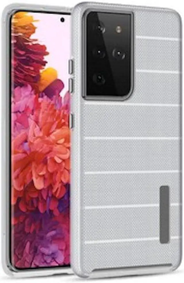 The Haptic Football Textured Anti-Slip Hybrid Armor Case for the Samsung Galaxy S21 Ultra 5G is the perfect combination of a TPU shell within a hard polycarbonate backing. It’ s reinforced with cushion technology for intense fortification that absorbs shock from bumps and falls without the bulk. The raised lip protects the screen from flat surfaces without obstructing touchscreen functionality.